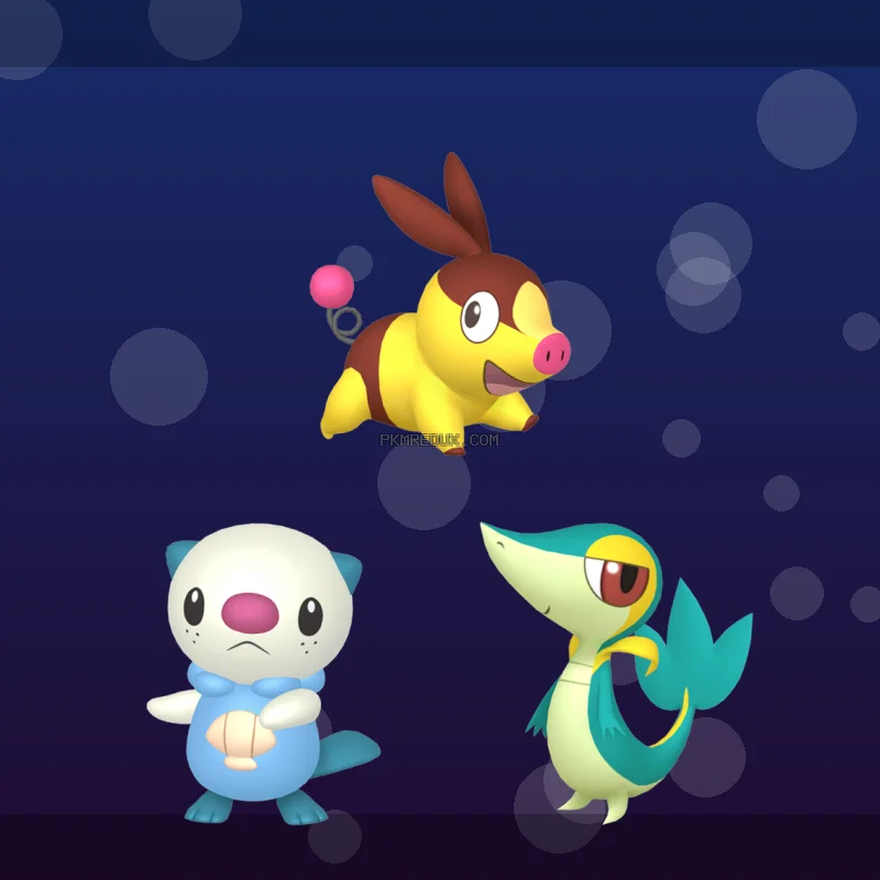 The Unova starters—Snivy, Tepig, and Oshawott are ready to join your team!